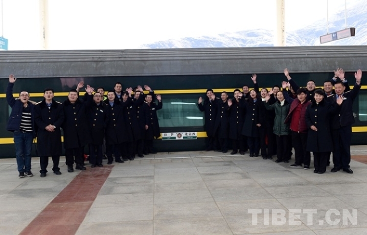 這是京藏車隊二組乘務員在拉薩站發(fā)車前與自己朝夕相伴的列車拍照留念(唐召明2016年2月3日攝)