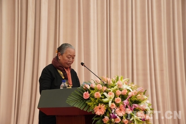 圖為會議現(xiàn)場西藏奇正藏藥股份有限公司董事長雷菊芳發(fā)言 攝影:王淑