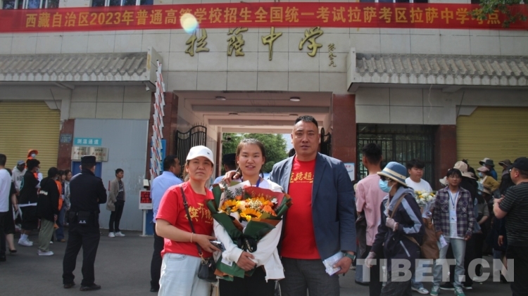 圖為劉先生夫婦與女兒在考場(chǎng)外合影留念 攝影:德吉卓瑪