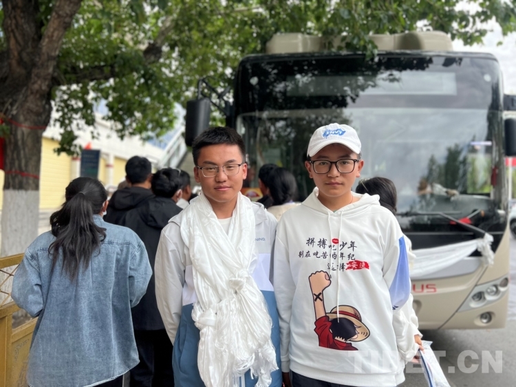 圖為張錦陽(yáng)和陳思杰結(jié)束考試后在考場(chǎng)外合影留念 攝影:德吉卓瑪