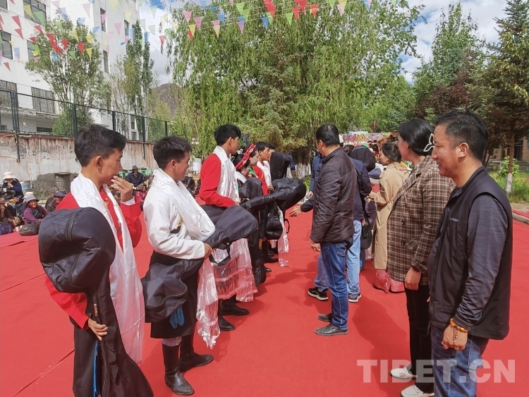 活動(dòng)現(xiàn)場,學(xué)生家長代表向?qū)W校贈(zèng)送錦旗并發(fā)表感言?!案兄x拉孜縣9+X中職學(xué)校培養(yǎng)了我的孩子,經(jīng)過學(xué)校的精心培養(yǎng),讓家人操碎心的孩子如今依靠從學(xué)校學(xué)到的技藝找到了一份滿意的工作,這讓我一家人感到很欣慰?!睂W(xué)生家長代表白瑪有感而發(fā),“希望在場的孩子們也通過發(fā)揮自己的優(yōu)勢,在社會上找到一份心儀的工作,同時(shí)真心祝福學(xué)校越辦越好。”