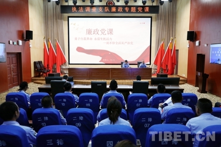 圖為西藏邊檢總站執(zhí)法調(diào)查支隊黨委副書記、政治委員為全體民警講授廉政專題黨課 攝影:仁青旺堆