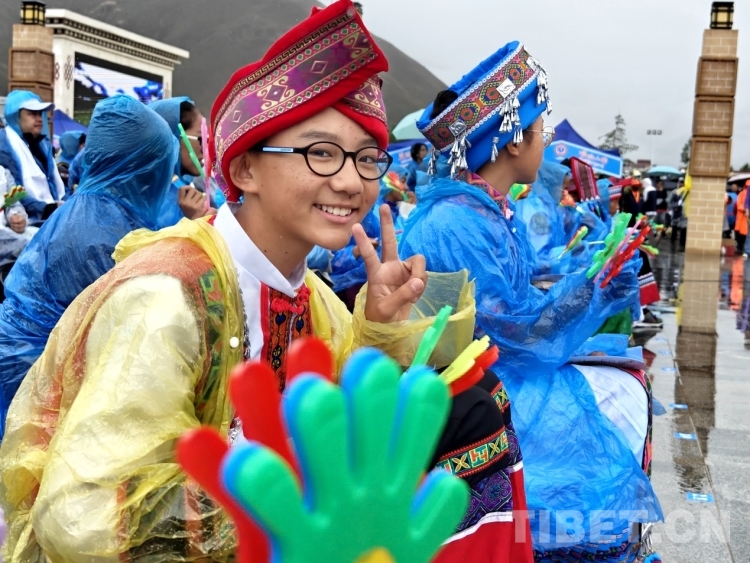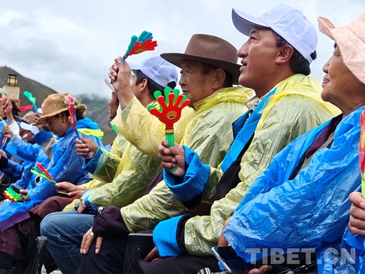當(dāng)天上午,雨水時急時緩下著。當(dāng)?shù)孛癖姄沃鴤恪⑴暌略缭缏渥却莩鲩_始。白瑪次仁是附近的村民,他告訴記者:“我平時就喜歡唱歌和跳舞,所以收到有文藝演出的通知就早早過來觀看,畢竟平時很少看到如此大型的演出?!?/span>