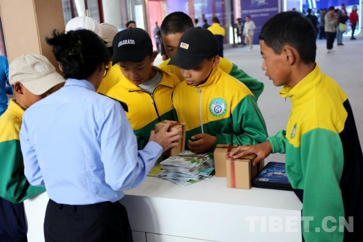 圖為拉薩市第三初級(jí)中學(xué)8年級(jí)8班的學(xué)生在展覽館參觀時(shí)向工作人員了解網(wǎng)絡(luò)安全相關(guān)知識(shí) 攝影:王佳豪