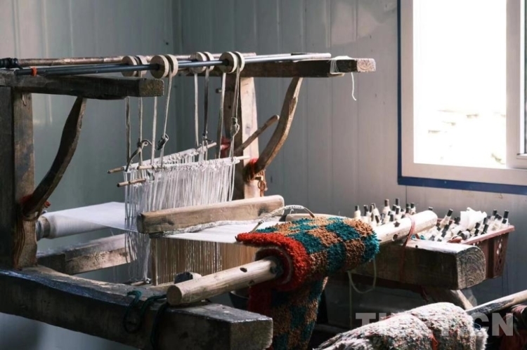 走進(jìn)氆氌紡織間,隊員們看到木質(zhì)的紡織機在吱嘎作響,工人左右手快速地配合,雙腳在幾個踏板間有條不紊地轉(zhuǎn)換,雙眼緊隨著雙手快速地游移目光,嫻熟程度令人嘆為觀止。