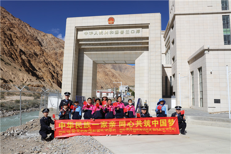 圖為參加活動(dòng)的民警與學(xué)生在中尼(中國與尼泊爾)9號(hào)界樁,開展“傳承紅色基因 弘揚(yáng)烈士精神”主題宣傳教育活動(dòng)