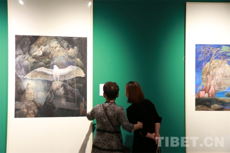 圖為尼瑪澤仁繪畫(huà)藝術(shù)展開(kāi)幕式現(xiàn)場(chǎng) 攝影:王妍丹