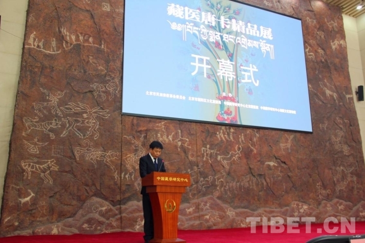 中國藏學(xué)研究中心北京藏醫(yī)院院長仲格嘉在開幕式致辭中介紹,起源和根植于中華民族的藏醫(yī)藥,是我國中醫(yī)藥學(xué)寶庫中的一顆璀璨明珠。藏醫(yī)藥迄今已有3800多年的發(fā)展歷史,在藏醫(yī)學(xué)史上形成了別出心裁的藏醫(yī)唐卡。藏醫(yī)唐卡以浩瀚畫卷,形象生動(dòng)、系統(tǒng)地描繪了藏醫(yī)藥學(xué)的體系框架、基礎(chǔ)理論、臨床實(shí)踐技法,以及藏醫(yī)史、醫(yī)德醫(yī)風(fēng)、養(yǎng)生保健等內(nèi)容。除了藏醫(yī)教學(xué)的實(shí)用價(jià)值外,藏醫(yī)唐卡還有很高的民族學(xué)、歷史學(xué)、宗教學(xué)及美學(xué)價(jià)值,其卷幅之多、內(nèi)容之廣博、構(gòu)思之巧妙、畫工之精湛,堪稱學(xué)習(xí)藏醫(yī)藥學(xué)的百科全書。