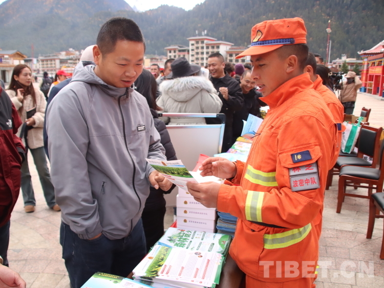 圖為林芝市森林消防支隊(duì)波密中隊(duì)在該縣廣場向市民科普日常消防安全知識(shí)