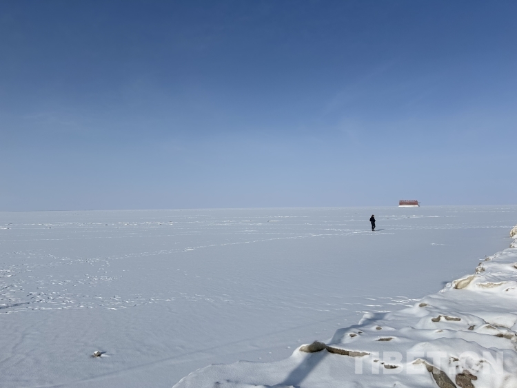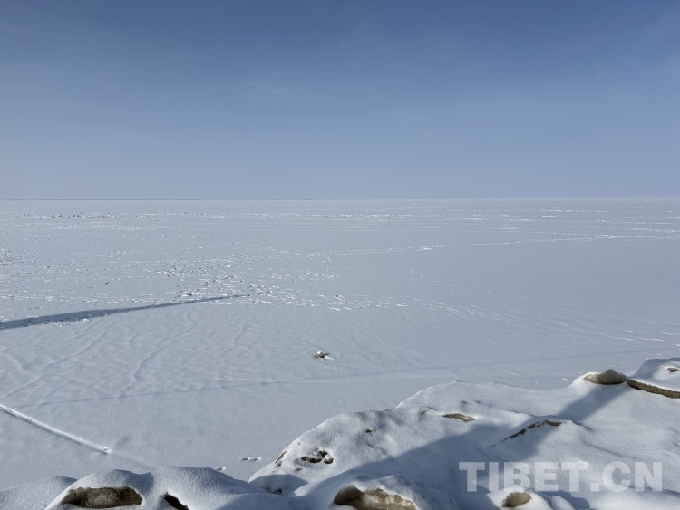 青海湖是我國面積最大的內陸湖泊,湖岸線長約360公里。落雪后的湖面更是白茫茫一片,極目遠眺,水與天相接。天地間十分安靜,只余不太溫柔的風聲在耳側呼嘯而過。偶爾有游人在冰面走動,在白色的背景下顯得格外醒目。我們的無人機好像一只勇敢的沙鷗,翱翔在水天之間。(中國西藏網(wǎng) 文/李一凡 龍真多吉 張萌萌)