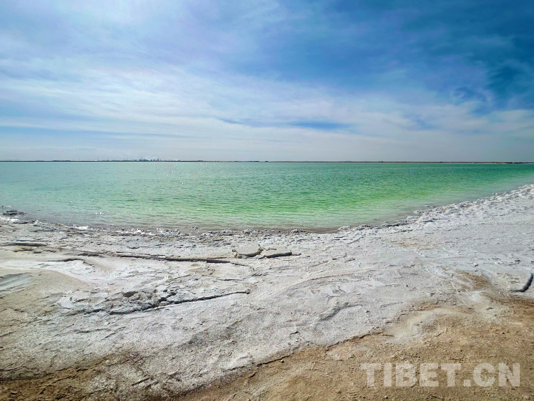 這里是鹽的天堂。湖水是高濃度的鹵水,蘊(yùn)藏著極其豐富的氯化鈉、氯化鉀、氯化鎂等無機(jī)鹽。厚度近20米的堅(jiān)硬鹽蓋構(gòu)成天然的鹽橋,旁無護(hù)欄,下無橋墩,更無流水。我們的汽車疾馳而過,毫無顛簸之感。湖岸邊有大量析出的鹽晶,形成厚實(shí)的白色鹽灘,在高原陽光的直射下發(fā)出晃眼的白光。(中國西藏網(wǎng) 文/李一凡 龍真多吉 張萌萌)