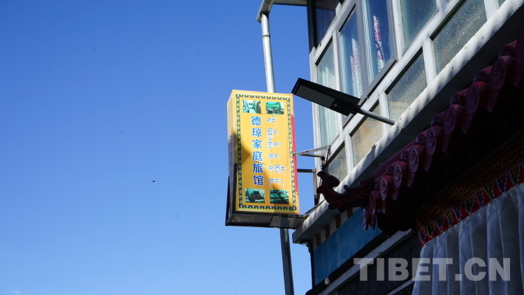 二十世紀(jì)八十年代前,整個(gè)洛扎縣的機(jī)動(dòng)車普及率很低,普通百姓出門只能乘坐馬車,從拉康鎮(zhèn)到洛扎縣縣城需要三天時(shí)間。所以在那時(shí)候,鎮(zhèn)子里的人很少去縣城,一些老人甚至一輩子也沒(méi)走出過(guò)拉康。2019年,拉康鎮(zhèn)的盤山公路全線通車,極大地改善了當(dāng)?shù)嘏c外界的交流交往,拉康鎮(zhèn)客流量逐步提升,2022年景區(qū)年旅游人次達(dá)38000余人次,政府在發(fā)展旅游業(yè)的同時(shí),投入100余萬(wàn)元帶動(dòng)居民開辦家庭旅館——村民將自家空余的房間對(duì)外短租,形成民俗式的家庭旅店,德瓊家庭旅館就是這樣的一間旅館。