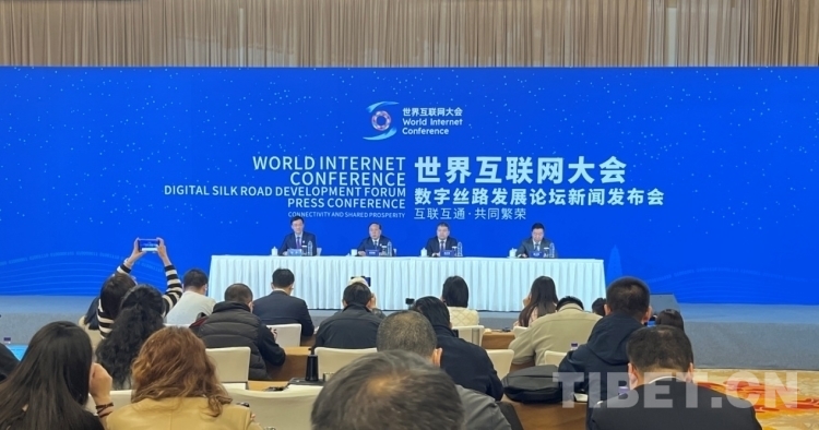 圖為世界互聯(lián)網(wǎng)大會數(shù)字絲路發(fā)展論壇新聞發(fā)布會現(xiàn)場 攝影:王茜