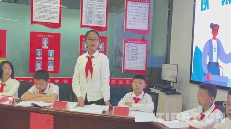 中國西藏網(wǎng)訊 4月19日,青海省西寧市海湖新區(qū)的文亭巷社區(qū)活動室里,傳出稍顯稚嫩卻有力的聲音:“今天我們辯論的題目是:中小學(xué)生應(yīng)不應(yīng)該使用電子產(chǎn)品。下面介紹雙方辯手……”這是文匯小學(xué)五年級二班的學(xué)生在此開展辯論賽。