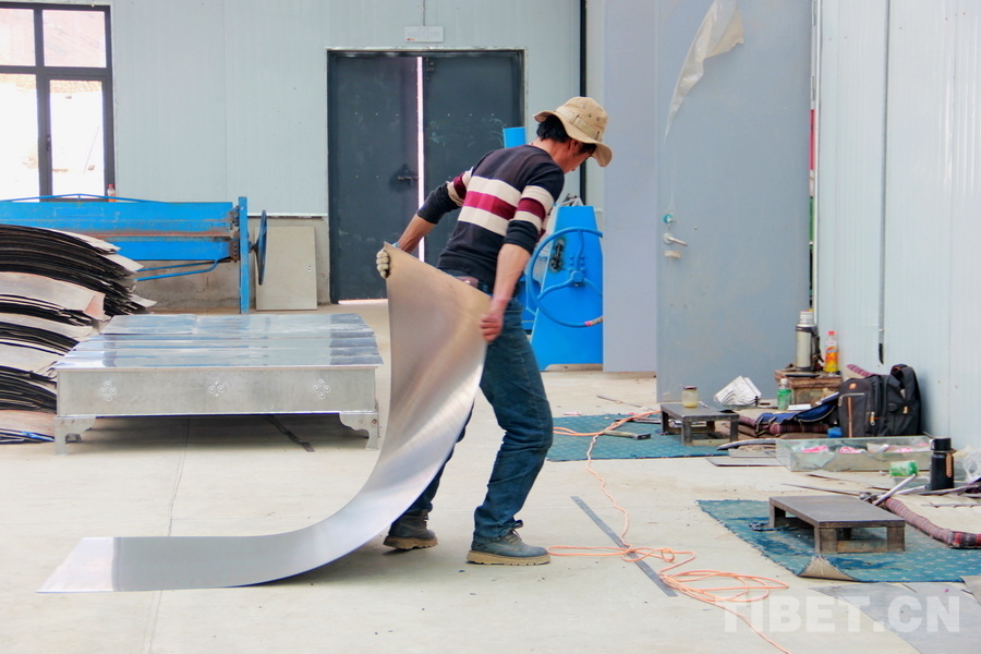 之前,江嘎鐵爐完全以手工打造,村民們各自分散在家進行制作?,F(xiàn)在,在村黨支部的帶領下和山東省援藏干部們的幫助下,村里不僅有了鐵爐加工農民專業(yè)合作社,還建起了溫暖高大的加工廠房,對村內傳統(tǒng)鐵爐加工產(chǎn)業(yè)進行了集中整合。廠房于2023年4月開工建設,當年10月竣工,惠及江嘎村100余戶群眾。加工廠引進了不少機器設備,為傳統(tǒng)技藝注入了現(xiàn)代技術,大幅提升了江嘎鐵爐的質量,縮短了制作周期。
