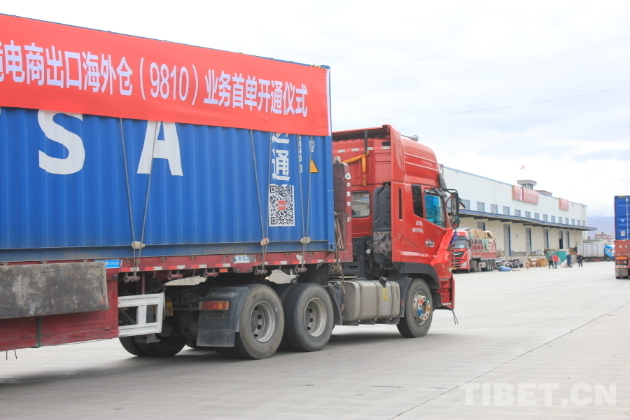 圖為中國(guó)(拉薩)跨境電子商務(wù)綜合試驗(yàn)區(qū)跨境電商出口海外倉(cāng)(9810)業(yè)務(wù)首單貨車向位于尼泊爾加德滿都市的海外倉(cāng)發(fā)車 攝影:張曉琪