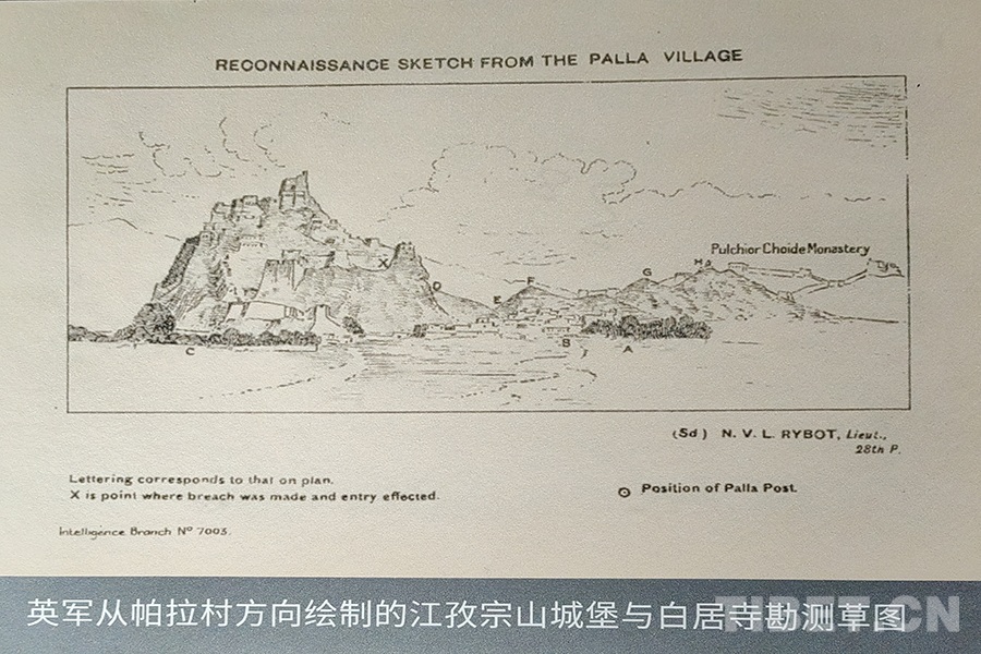 圖為英軍繪制的勘測(cè)草圖,拍攝于紀(jì)念西藏江孜抗英保衛(wèi)戰(zhàn)120周年主題展 攝影:楊月云