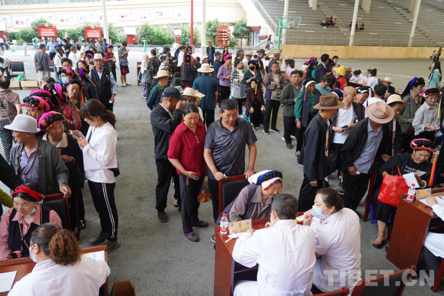 7月8日,義診專家分為3個(gè)小組,在縣城東女國廣場、丹東鎮(zhèn)和東谷鎮(zhèn)正式開展義診活動(dòng)。上午9時(shí),在縣城東女國廣場,得到消息的群眾早早來到現(xiàn)場排隊(duì)領(lǐng)號(hào)分流等待就診,現(xiàn)場共設(shè)立了10多個(gè)專業(yè)診療臺(tái),涵蓋了心內(nèi)科、骨科、神經(jīng)內(nèi)科等,確保能夠滿足當(dāng)?shù)鼐用竦尼t(yī)療需求。