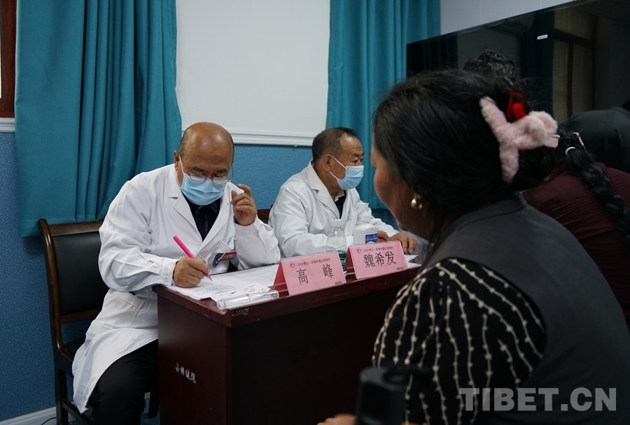 啟動儀式后,醫(yī)療專家團(tuán)一行來到白玉縣人民醫(yī)院開展義診活動。當(dāng)日上午,陰雨連天,但醫(yī)療專家們的熱忱絲毫不減,用北京先進(jìn)的醫(yī)療技術(shù)和深厚的人文關(guān)懷為當(dāng)?shù)厝罕妿砹私】蹬c溫暖。