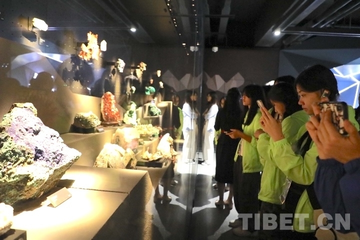 上午9時(shí),身披一襲金色霞衣的青海省自然資源博物館,如一座知識(shí)燈塔,引領(lǐng)這些香港學(xué)子們步入時(shí)光長(zhǎng)廊。在“礦物晶體廳”,一堂生動(dòng)的地質(zhì)課正以最直觀的方式展開。學(xué)生們緊跟講解員的步伐,對(duì)每一種礦物質(zhì)都充滿好奇。他們提出的問題,既天真爛漫又不乏機(jī)智。