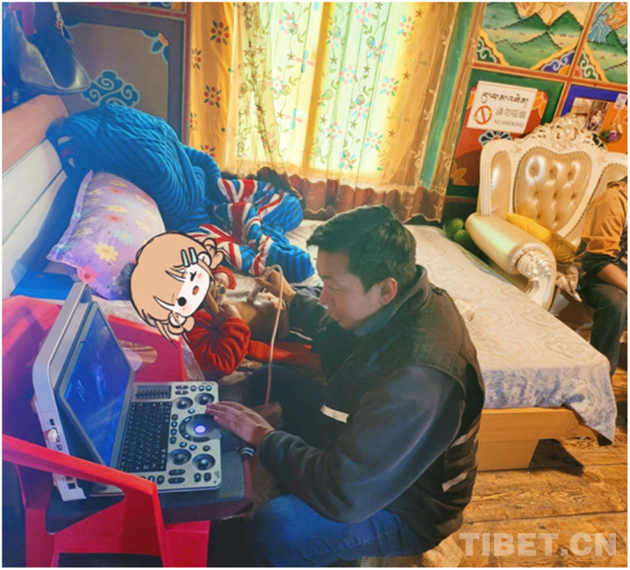 圖為德格縣疾病預(yù)防控制中心工作人員為澤丹檢查 圖片由受訪者提供