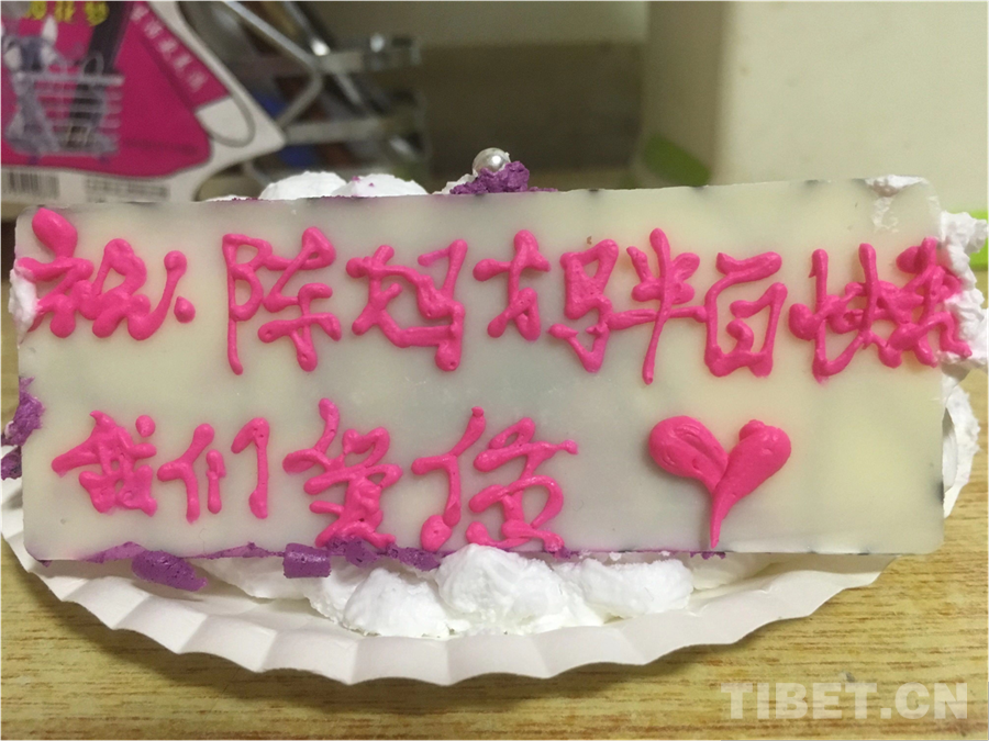 圖為同學(xué)們?cè)诮o陳英姿老師的生日蛋糕上寫(xiě)下祝福