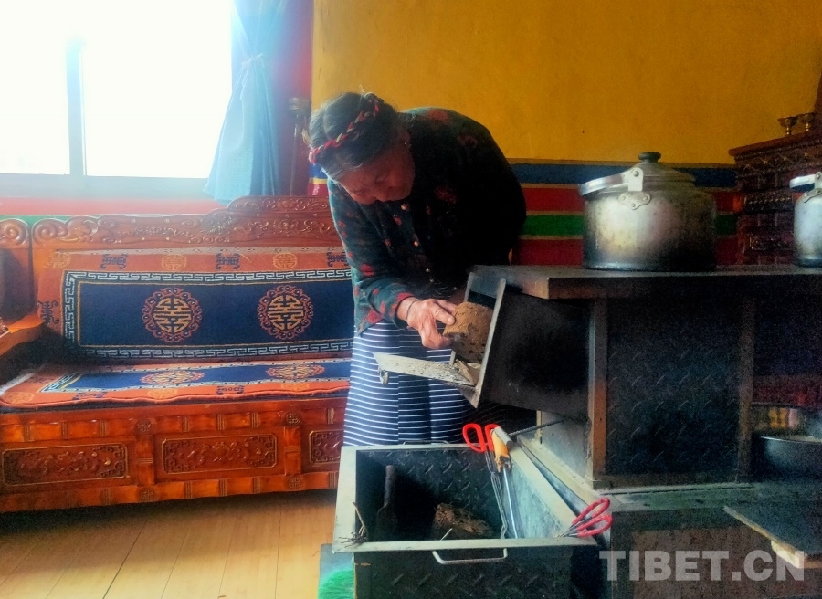 圖為次央白宗給爐子添火 攝影:周晴晴