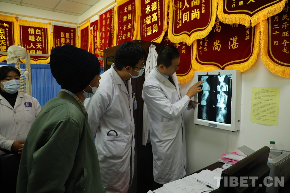 圖為莊乾宇正在為患者分析脊柱側(cè)彎 攝影:莫干措