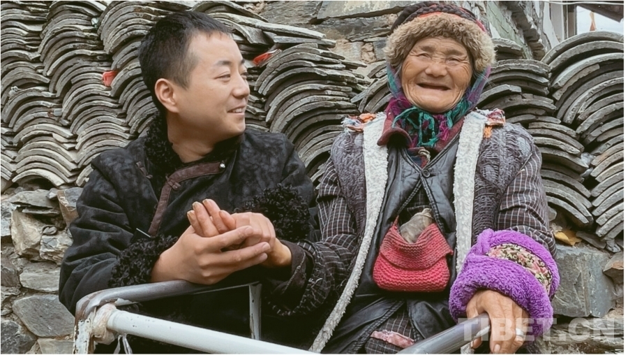 第二個老師是兩腿癱瘓的獨居藏族老人斯達(dá)木,是楊斐在第一次下鄉(xiāng)時遇到的。老人耐心教楊斐藏語,楊斐給老人帶去了輪椅、拐杖、紙尿褲等生活用品,兩人感情日漸深厚,他認(rèn)斯達(dá)木老人當(dāng)了干媽。