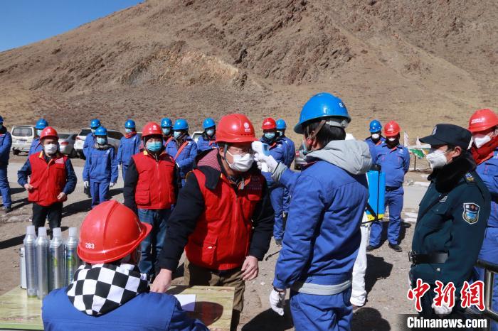 圖為工程建設(shè)現(xiàn)場,電網(wǎng)建設(shè)者經(jīng)測溫消毒登記等疫情防控程續(xù)后有序進(jìn)場。徐曉韜 攝