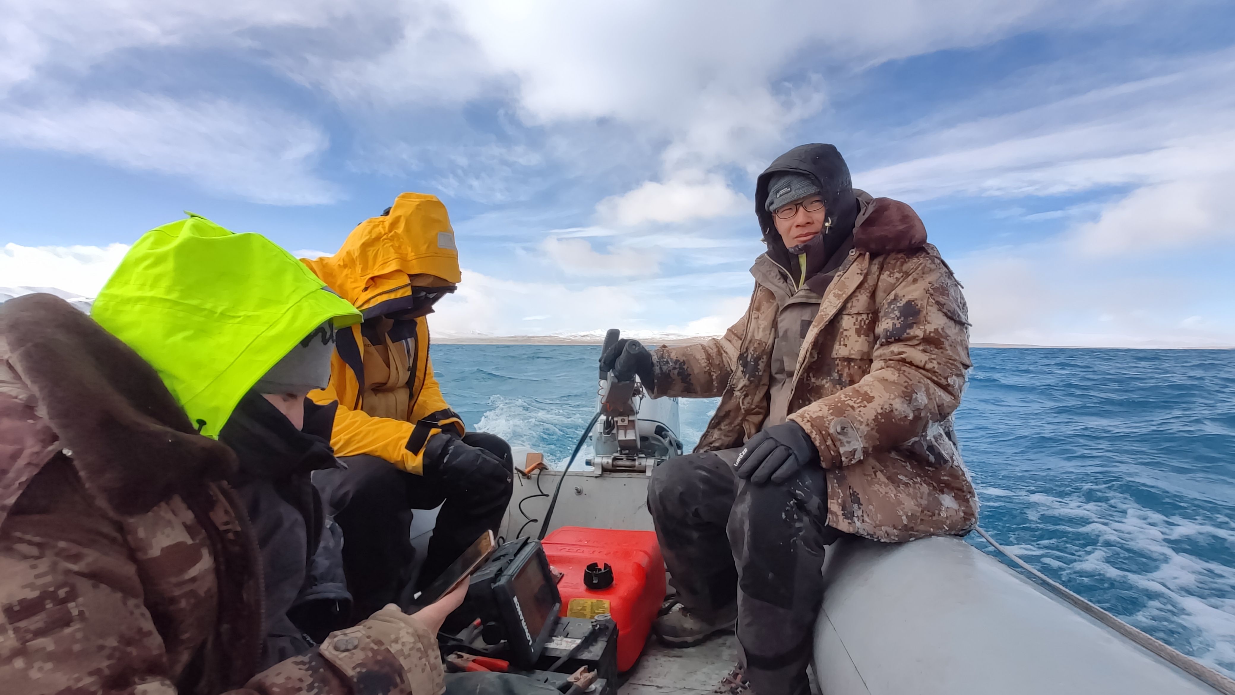 慢慢地,科考隊掌握了規(guī)律——湖面經(jīng)常下午四五點(diǎn)起風(fēng)。為躲避風(fēng)浪,隊員們冒著低溫早起工作,下午起風(fēng)的時候收隊。如果天氣好,趕上哪天下午沒怎么刮風(fēng),大家就一鼓作氣干到晚上十一二點(diǎn)再回營。