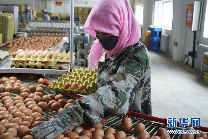 在德青源金雞扶貧產業(yè)園內,工人正在挑揀雞蛋。新華社記者 朱藝琳 攝