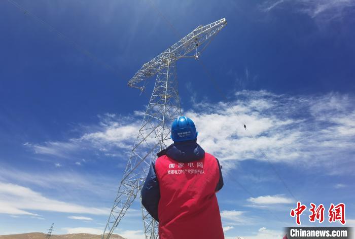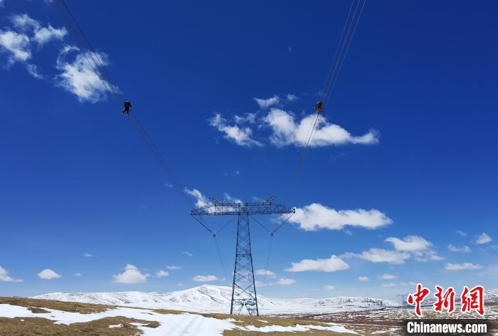 圖為國(guó)網(wǎng)青海檢修公司輸電運(yùn)檢人員對(duì)“電力天路”青藏聯(lián)網(wǎng)工程±400千伏柴拉線開(kāi)展年度檢修,查找并消除線路缺陷隱患。謝莉蓉 攝