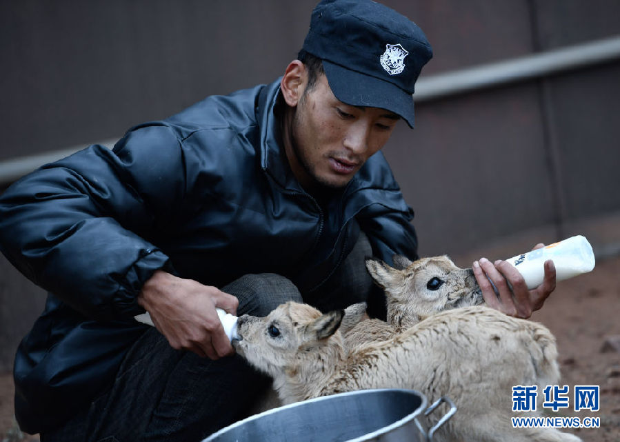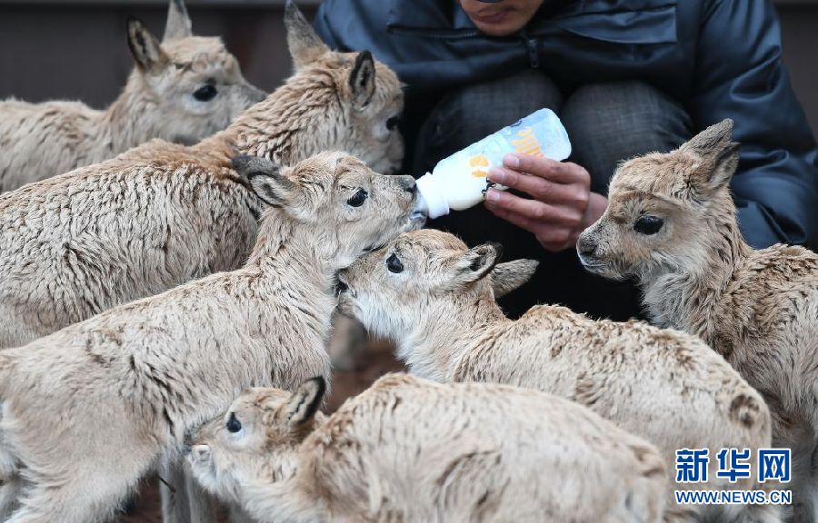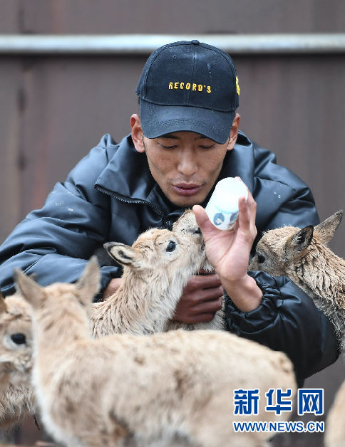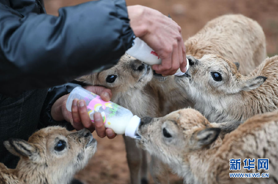 為讓11只藏羚羊幼仔盡快適應(yīng)環(huán)境、健康成長,卓乃湖保護(hù)站安排專人,在特定區(qū)域?qū)ζ溥M(jìn)行喂養(yǎng)。記者在卓乃湖保護(hù)站看到,每日早、中、晚,巡山隊員才文多杰會按時給小藏羚羊喂奶,每只小藏羚羊都有自己的“專用”奶瓶。