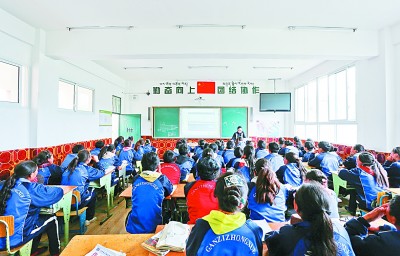 甘孜縣民族中學(xué)的學(xué)生在多媒體教室上課。劉炳科攝