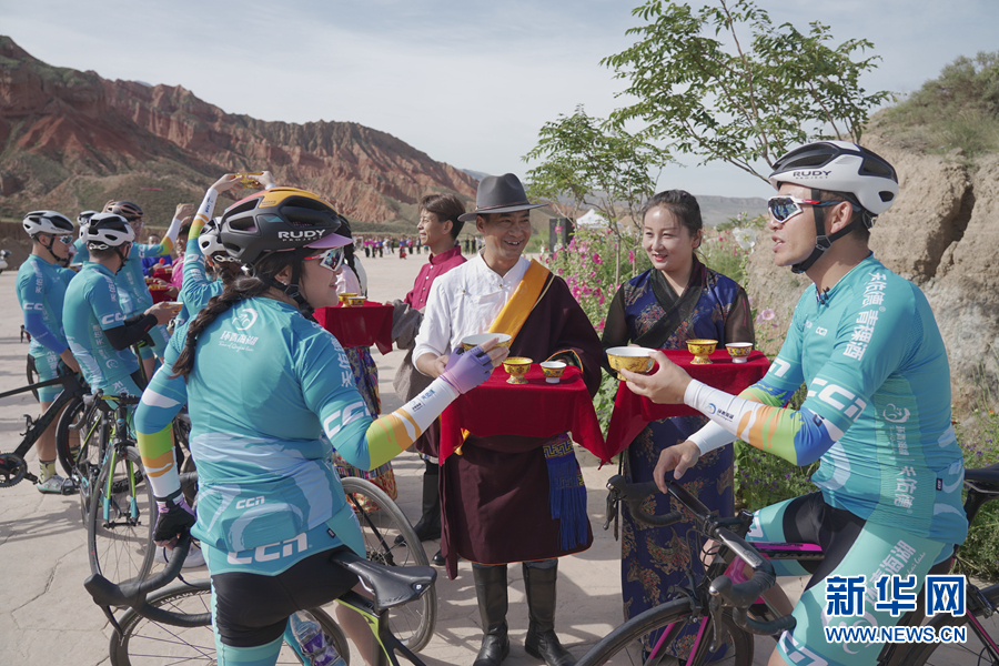 圖為“挑戰(zhàn)2020”環(huán)湖精英行“網(wǎng)紅”團隊在貴德國家地質公園準備騎行。新華網(wǎng) 魚昊 攝