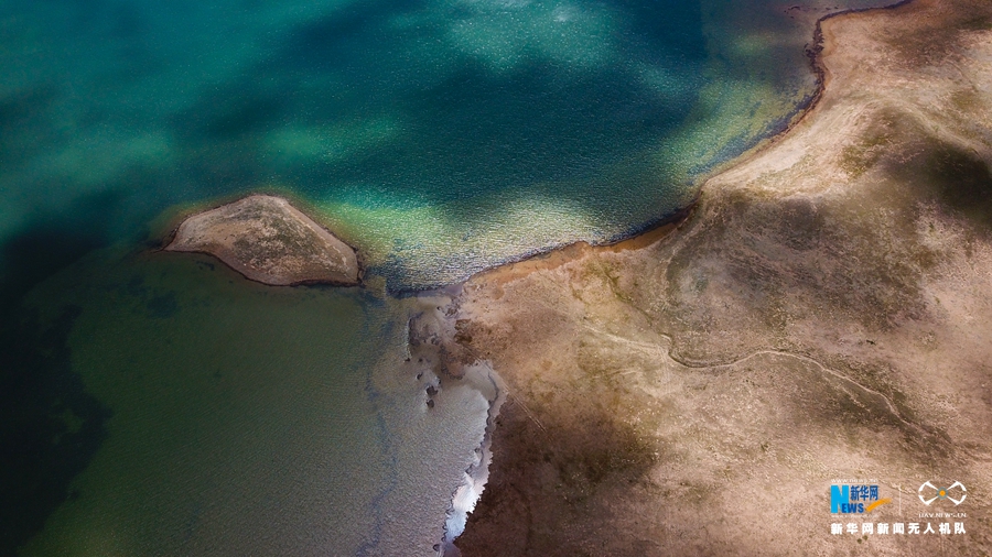 素有“千湖之縣”的瑪多縣境內(nèi)的湖泊。(航拍圖)新華網(wǎng) 宋忠勇 攝