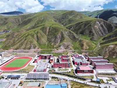 8月12日,青海玉樹(shù),航拍玉樹(shù)州第四民族高級(jí)中學(xué)。該校為北京支援建設(shè)的現(xiàn)代化中學(xué)。李凱祥 攝