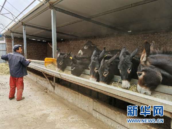 村民韓興龍給合作社的黑驢喂草。新華社記者 張欽 攝