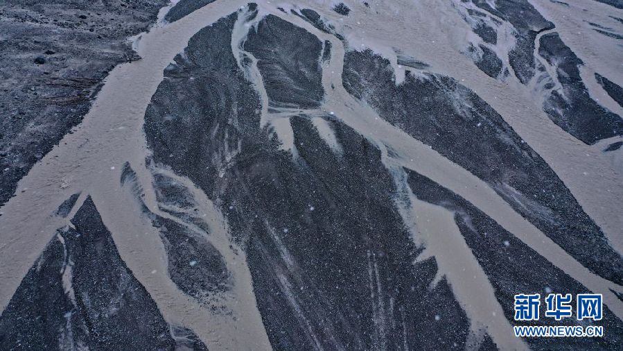 這是8月15日拍攝的崗加曲巴冰川融水形成的尕爾曲(無人機照片)。新華社記者 吳剛 攝