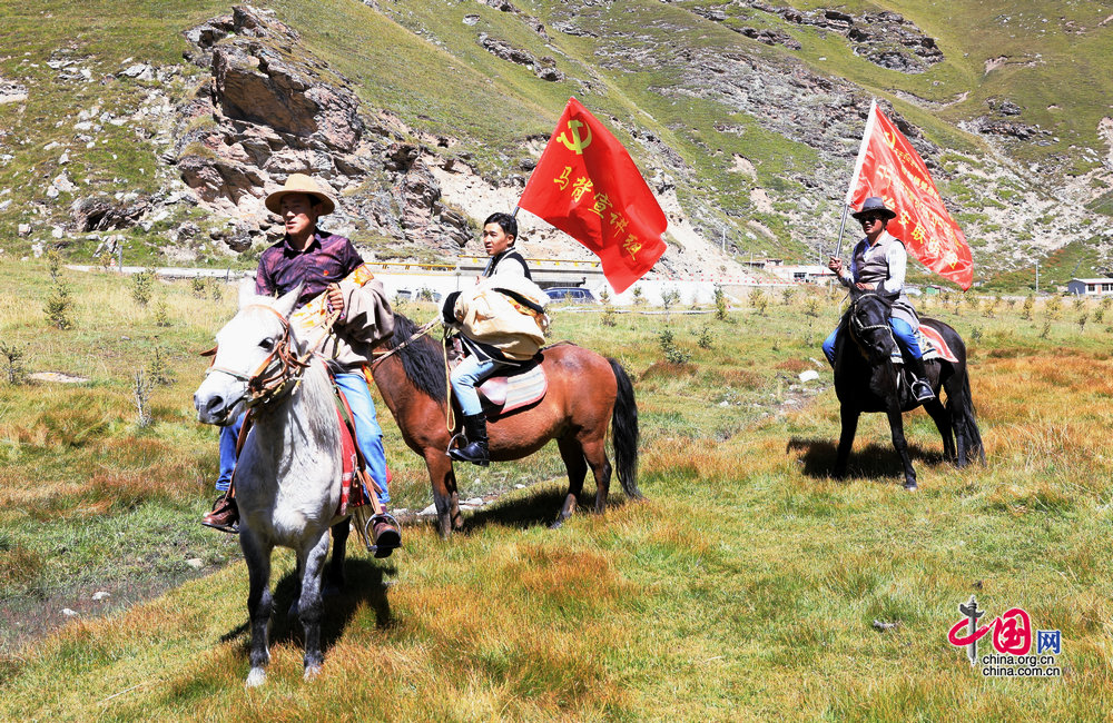 2019年瑪沁縣委開始推行“十化”黨建工作措施,官卻隨即組織村里糾紛調解組的隊員組建起“紅旗志愿服務隊”“感恩宣講隊”等基層宣講組織,走帳串戶,用通俗易懂的語言、鮮活的事例、身邊的典型,圍繞產(chǎn)業(yè)發(fā)展、教育、農(nóng)牧、衛(wèi)生、社會保障、扶貧、包蟲病預防等方面,以貼近群眾生活內容,把黨和政府的惠民政策傳遞給廣大牧民群眾。