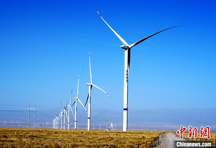 驅(qū)車近3小時后,中新社記者站在青海省海南藏族自治州“青豫特高壓外送基地”電源配置項(xiàng)目1300兆瓦風(fēng)電場,放眼望去,一臺臺矗立的風(fēng)機(jī)綿延數(shù)百公里。