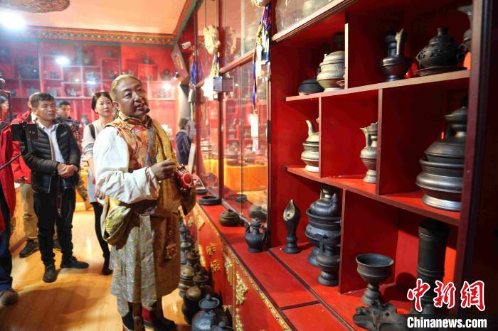 圖為青海省玉樹藏族自治州囊謙縣的國(guó)家級(jí)“非遺”傳承人白瑪群加介紹藏族黑陶手藝。張?zhí)砀?攝