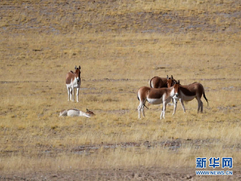 10月30日在青海省果洛藏族自治州瑪多縣境內拍攝的一群藏野驢。新華社記者 張龍 攝