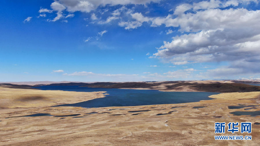 10月30日在青海省果洛藏族自治州瑪多縣境內拍攝的一處湖泊(無人機照片)。新華社記者 張龍 攝