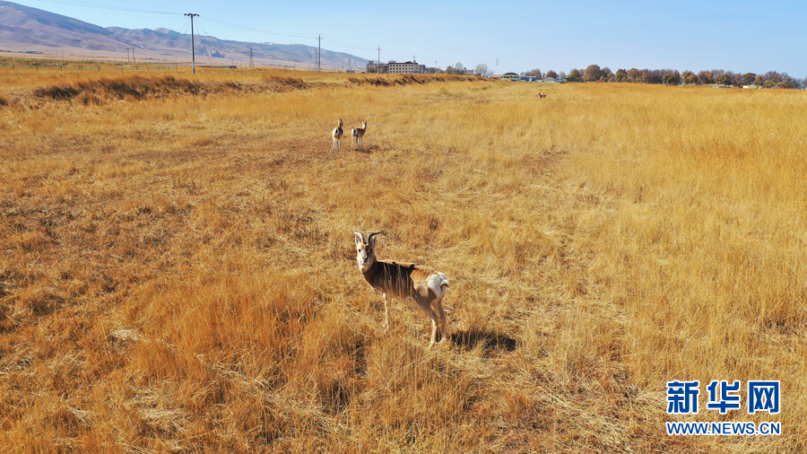 青海湖國家級自然保護區(qū)管理局南岸保護站,一群普氏原羚正在悠閑漫步。新華網 汪要強 攝