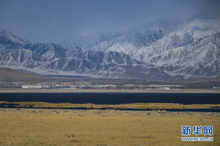 一群鵝喉羚在都蘭湖國家濕地公園內(nèi)活動。(11月21日攝)新華網(wǎng) 潘彬彬 攝
