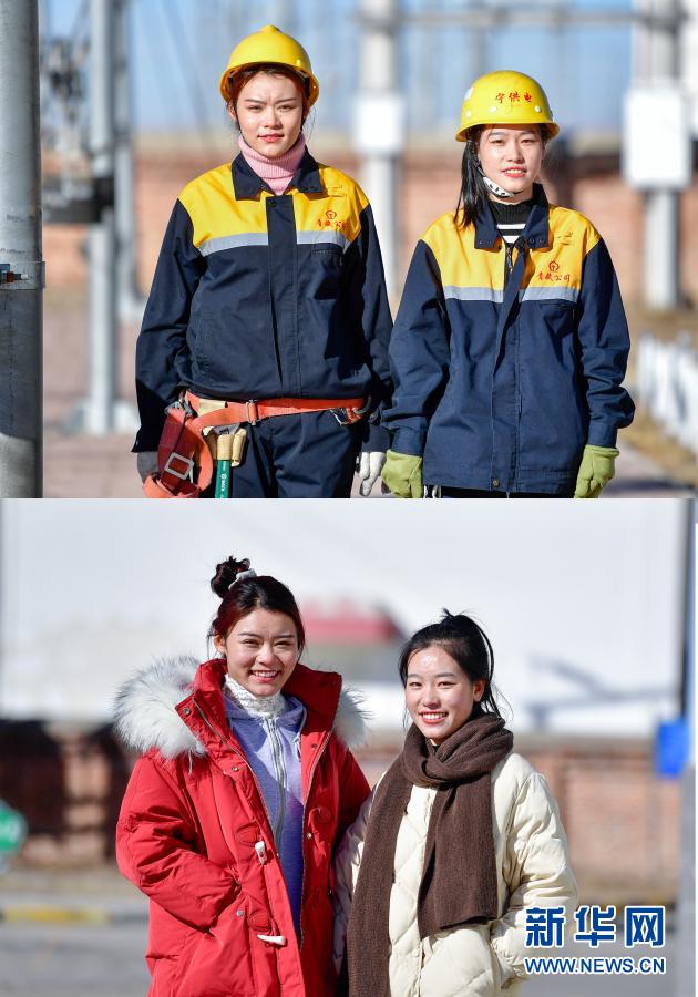 這是一張拼版照片,上圖為:羅露露(左)與郭勝強(qiáng)在工作前拍攝的合影(2月2日攝);下圖為:羅露露(左)與郭勝強(qiáng)在休息時(shí)拍攝的合影(2月2日攝)。新華社記者 張龍 攝