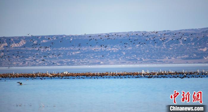 圖為上萬(wàn)只野生鳥類在湖中嬉戲。烏席勒 攝