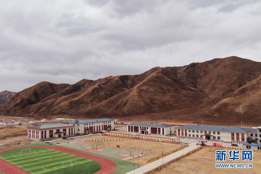 3月17日拍攝的果洛藏族自治州甘德縣下貢麻鄉(xiāng)寄宿制中心小學(xué)(無(wú)人機(jī)照片)。 新華社記者 張龍 攝
